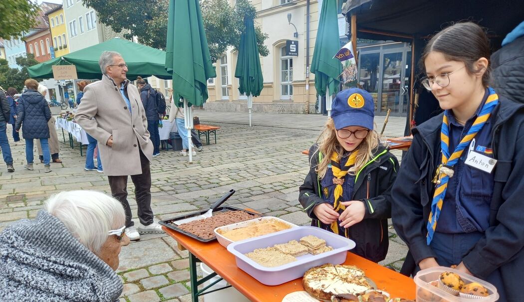 Schon, bevor man auf den Stadtplatz kam, empfing der Pfarrgemeinderat die Besucher am Maxplatz mit Würstln, Kaffee, Kuchen und einer Drehorgel, um Geld für den guten Zweck zu erwirtschaften.