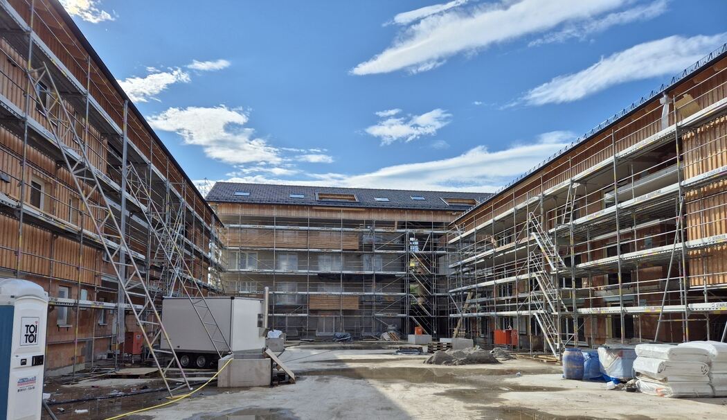 Traunstein – Auf die Zielgerade geht die Wohnungsbaugesellschaft Traunstein im Baugebiet in Seiboldsdorf: Sie vollendet den Vierseithof mit 50 Wohnungen. Nach Angaben von Luisa Rudek, der Referentin der Geschäftsführung, können die ersten Mieter im Oktober einziehen. Der Vierseithof in Seiboldsdorf ist das erste Projekt, das die 2022 von der Stadt gegründete GmbH verwirklicht.