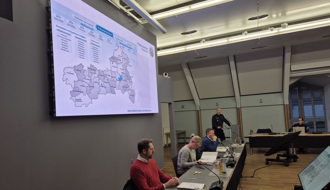 Viele Gemeinden fallen in den Zuständigkeitsbereich der Polizeiinspektion Traunstein – unter anderem auch die Stadt Traunstein. Gottwald erläuterte im Ausschuss, dass die Zahl der Straftaten in der Stadt nach einem Rückgang in den Corona-Jahren in der Folge immer zwischen 1200 und 1300 gelegen habe: 2022 habe sie 1251 betragen, 2023 dann 1276 und 2024 schließlich 1255.