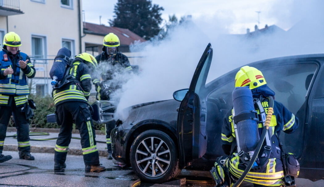 Die daraufhin alarmierten Feuerwehren aus Traunstein und Haslach konnten den Brand auf den Motorraum einschränken. Mit einem hydraulischen Akku-Spreizer wurde der Motorraum geöffnet, um die letzten Flammen abzulöschen.