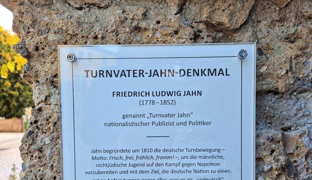 An der Mauer des Denkmals gibt's Informationen zu Turnvater Jahn.