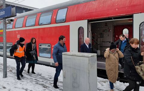Neben zahlreichen Mitarbeitern sowie Vertretern beider Firmen waren auch Peter Högl von der Bayerischen Eisenbahngesellschaft (BEG) und Sebastian Schallinger, Sachgebietsleiter für den Öffentlichen Personennahverkehr im Landratsamt Traunstein, zur offiziellen Übergabe des Zuglaufschildes an den winterlichen Bahnsteig „1a“ gekommen. „Der Biathlonweltcup Ruhpolding gleich im Januar wird eine erste Herausforderung, wir sind aber bestens darauf vorbereitet, dass wir die Fans und Zuschauer sicher und pünktlich ans Ziel bringen“, sagte Annette Luckner, die Pressereferentin der BRB im Gespräch mit dem Traunsteiner Tagblatt.