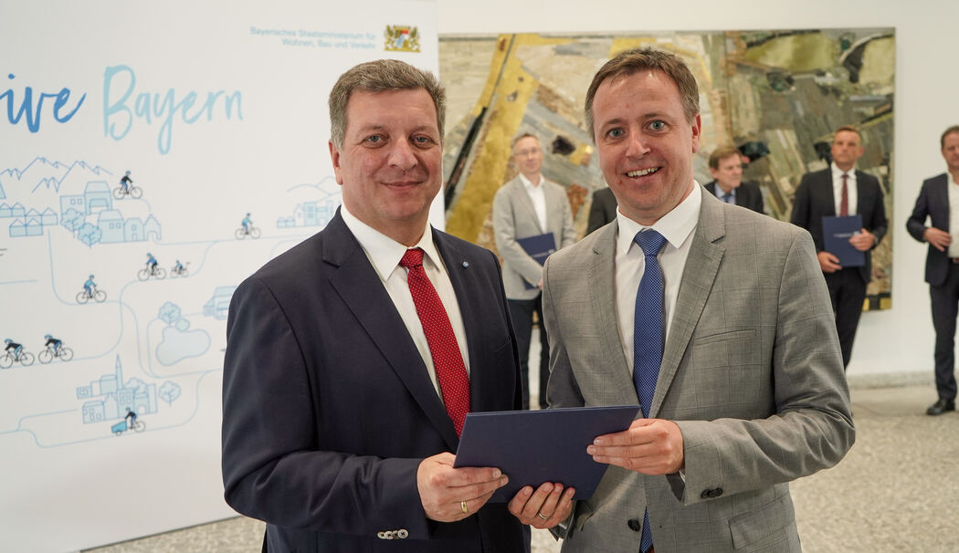 Die Zusage der Unterstützung erhielt Traunstein am Mittwoch. Oberbürgermeister Dr. Christian Hümmer nahm in München die symbolische Förderurkunde aus den Händen von Bayerns Verkehrsminister Christian Bernreiter im Staatsministerium für Wohnen, Bau und Verkehr entgegen. Wenige Stunden später verkündete Hümmer dann in der Stadtratssitzung die gute Nachricht. Er sprach von einer »großen Freude«, dass die Stadt Traunstein ausgewählt worden sei und nun finanzielle Unterstützung erhalte. Er sei dankbar gegenüber der Staatsregierung, die ein »offenes Ohr« gegenüber den Kommunen und insbesondere auch gegenüber Traunstein zeige.