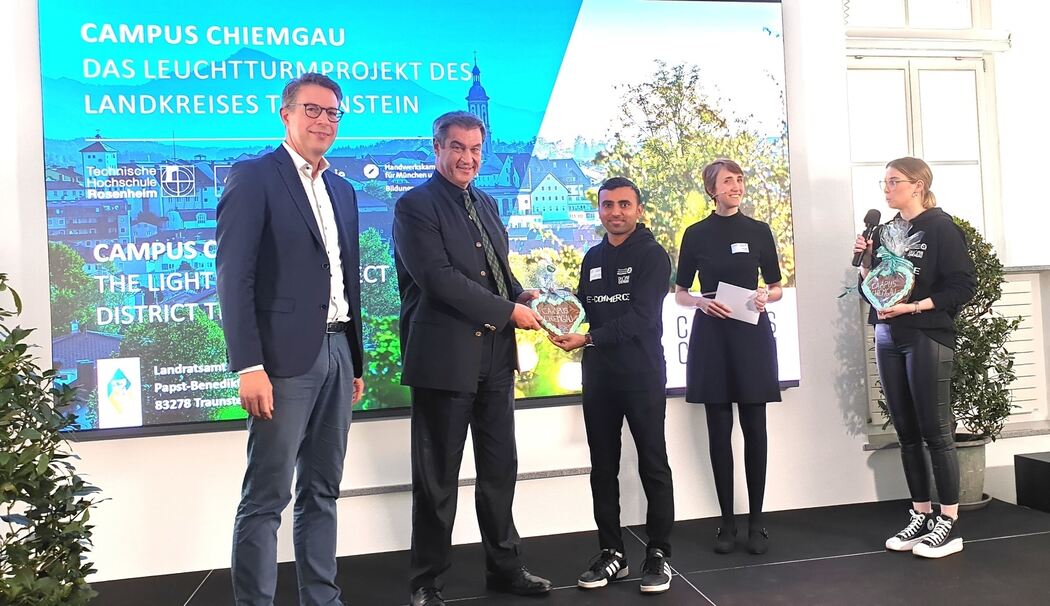 Söder sagte, dass neben einem rationalen Grund – dem Angebot der Technischen Hochschule Rosenheim – auch ein emotionaler für ein Studium in Traunstein spreche. So sei eine Umgebung vorhanden, die – wie der Ministerpräsident mit Blick auf die landschaftlichen Schönheiten in der Region sagte – »zum freien Denken einlädt«. Söder: »'E-Commerce' und Edelweiß verbinden sich zu einer Symbiose« – und diese Konstellation mache ein Studium in Traunstein »so sexy«. Die Region besitze ein »riesiges Potenzial«.