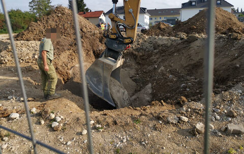 Bereits am Donnerstag, 10. September, war auf der Baustelle an der Chiemseestraße eine Weltkriegsbombe gefunden worden. Am folgenden Tag entschärfte ein Team des Kampfmittelräumdienstes das 135 Kilogramm schwere Relikt aus dem Zweiten Weltkrieg (zum Bericht). Während der Entschärfung mussten auch vor zwei Wochen die Anwohner in einem Umkreis von 350 Metern ihre Wohnungen und Häuser verlassen. 19 vorwiegend ältere Frauen und Männer kamen für einige Stunden in die Turnhalle der Ludwig-Thoma-Grundschule.