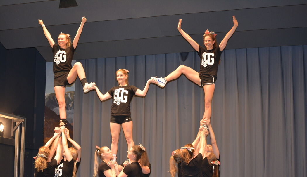 Schwungvoll ging es mit den »Little Cats« weiter. Dann folgte ein besonderer Überraschungsakt mit den »Golden Panthers«. Auf der Bühne tummelten sich plötzlich mit goldenen Röckchen bekleidet 18 Mütter und ein Vater – in goldener Hose – der aktiven Cheerleaderinnen und zeigten eine Mischung aus Tanz und Stunts in einer besonderen Choreographie. Eigentlich wollten die Eltern das Schamgefühl ihrer Kinder testen, doch der Showakt kam hervorragend an und zeigte, dass diese Sportart durchaus auch von älteren Semestern ausgeübt werden kann. Eine weitere Einlage bot das Ehemaligen-Team und bewies eindrucksvoll mit Hebefiguren und einer starken Choreographie, dass dessen Mitglieder nichts verlernt hatten.