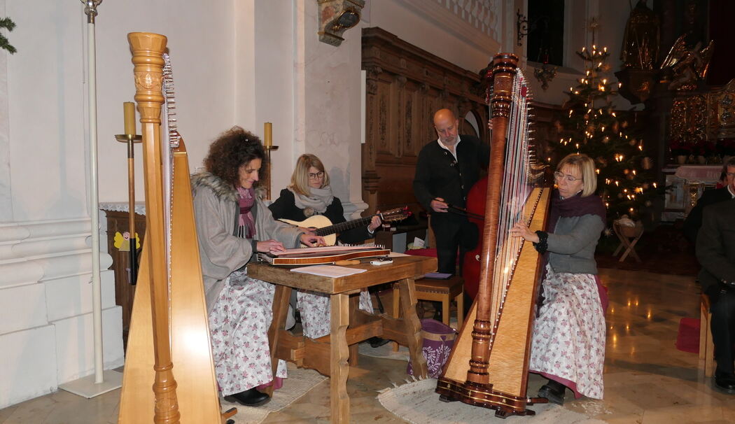 Von der Harfe begleitet sang der Ruperti Viergsang aus Salzburg. Wolfgang Busch, Rupert Reindl, Johannes Forster und Ernst Meixner überzeugten mit ihren wundervollen Stimmen beim »Als Maria übers Gebirge ging«, »S´Gebot is ausganga«, »Nachtn spaat« und das »Buama potz schliggra« das im Text einige verschmitzte Passagen enthielt.