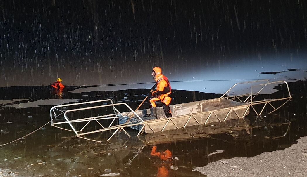 Ein entscheidender Faktor bei der Eisrettung ist natürlich die Zeit, da das eiskalte Wasser direkt unter der Eisdecke dem Körper rasant die Wärme entzieht. Nicht zu unterschätzen ist auch, dass das Einbrechen und in der Folge das Abtreiben unter einer Eisdecke auch lebensbedrohende Gefahren für die Rettungskräfte birgt. Daher ist trotz aller gebotenen Eile eine gewisse Eigensicherung unerlässlich.