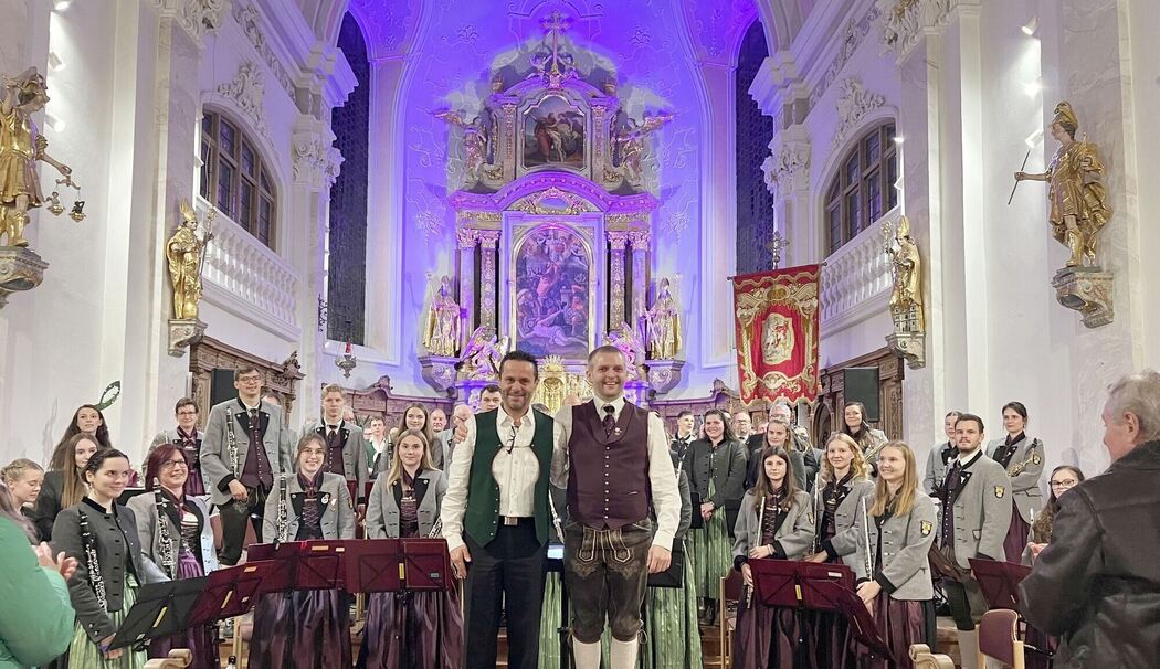 Waging am See – Ein Konzerterlebnis der Extraklasse gab es bei den drei Gemeinschaftskonzerten der Ortsmusikkapelle Elixhausen und der Musikkapelle Waging am See. Zweimal fand die Aufführung unter dem Motto »Drent & herent« in der evangelischen Kirche in Elixhausen statt und zum Abschluss in der Pfarrkirche St. Martin. Als Dank für alle Beteiligten gab es mehrmals fast nicht enden wollenden Applaus. Höhepunkt war die Verabschiedung von Dirigent Makis Gypas von seiner langjährigen Tätigkeit als Musikalischer Leiter.