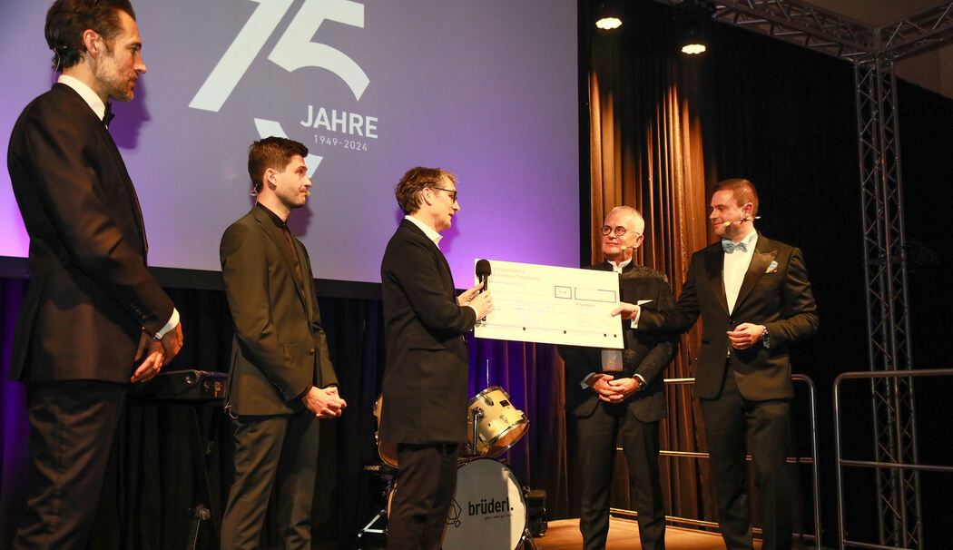 Wie man gemeinsam im Team schwierigste Herausforderungen meistern kann und damit Wegweisendes bewirkt, stellte Prof. Dr. Dirk Zaak, Chefarzt für Urologie der Kliniken Südostbayern, am Beispiel des Vereins »Gemeinsam gegen den Krebs« heraus, dessen Vorsitzender er ist. »Unser Verein bietet umfassende psychosoziale Unterstützung, die weit über die medizinische Versorgung hinausgeht«, sagte Zaak. Mit der Überreichung eines Spendenschecks über 7500 Euro an Zaak setzten Schorsch, Georg und Benedikt Brüderl eine Initialzündung, der sich spontan einige Firmenkunden aus München und Frankfurt anschlossen, so dass sich die Summe auf knapp über 30 000 Euro erhöhte. Wolfgang Altmüller, Vorstandsvorsitzender der meine Volksbank Raiffeisenbank eG in Rosenheim, rundete den Betrag schließlich noch auf 40 000 Euro auf.