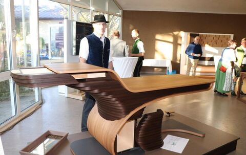 Die gefertigten Stücke seien »wahrlich Meisterstücke« betonte stellvertretender Kreishandwerksmeister Johannes Haas zu dem Planungstisch aus Rüster und Räuchereiche, dem Sideboard aus Nussholz oder den Sekretär aus Eiche und Räuchereiche und die vielen weiteren Meisterstücke, die allesamt auf höchstem Niveau gefertigt wurden.