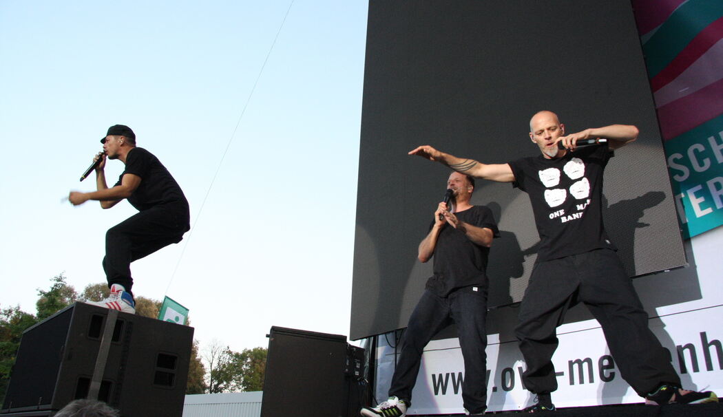 Vor ausverkauftem Haus zeigten die Fantastischen Vier am Mittwochabend beim Rosenheimer Sommerfestval, mehr als eindrucksvoll, dass sie auch nach 26 Jahren auf der Bühne noch lange nicht zum alten Eisen gehören. Thomas D, Smudo und Co. haben zwei Stunden lang Tausende Musikfans im Mangfallpark Süd mit ihrem Mix aus alten und neuen Hits begeistert und dabei selber ordentlich geschwitzt. Denn stilhalten konnten sich Fanta4 an diesem Abend auf der Bühne nur schwer. Dafür sorgte auch das Rosenheimer Publikum, von dem die Band absolut begeistert war. Smudo und Thomas D. ließen sich sogar kurz vor Ende noch zum Stagediving hinreißen und wurden einmal quer durch die Menge getragen. - apo