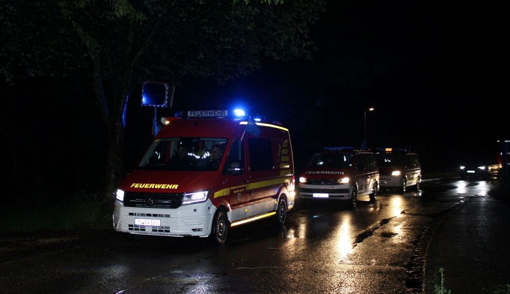 Bis zur Abfahrt wurden 15 Feuerwehrfahrzeuge mit rund 80 Feuerwehrmännern und -frauen sowie Helfern des Malteser Hilfsdienstes aus Traunstein in den Bereitstellungsraum nach Trostberg alarmiert, um im Konvoi die etwa 150 kilometerlange Strecke in das Unglücksgebiet anzutreten.