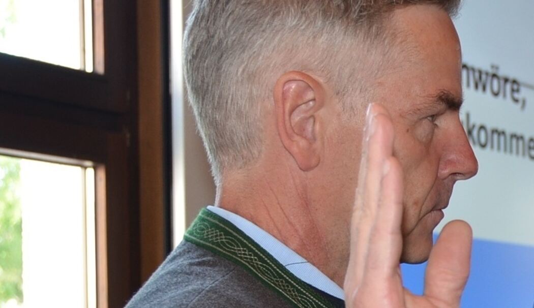Für den neuen Landrat Andreas Danzer standen in der vergangenen Sitzung des Kreistags neben seiner Antrittsrede und dem Amtseid unter anderem zwei weitere Aufgaben an. Danzer vereidigte Andreas Scheck aus Marquartstein als seinen Nachfolger und neuen Kreisrat der FW/UW-Fraktion.