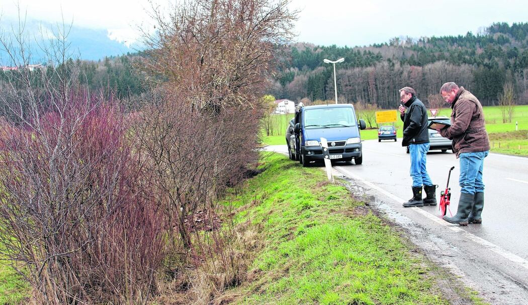 Im Straßengraben, nur rund 100 Meter von der Abzweigung der Bundesstraße 304 in die Kreisstraße in Richtung Waging entfernt, war am Donnerstagnachmittag eine Leiche gefunden worden. Gestern war dort unter anderem die Spurensicherung im Einsatz. (Foto: Schwaiger-Pöllner)