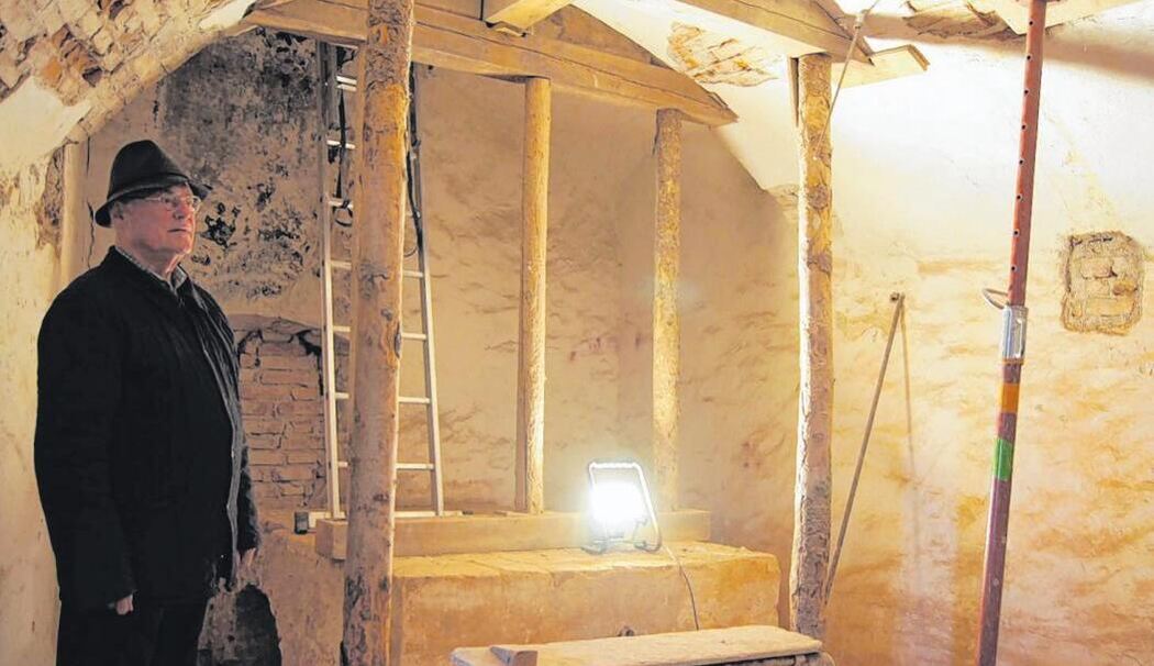Im Rahmen der aktuellen Bauarbeiten wurde ein Raum im Hochschloss, in dem bisher unter anderem Utensilien des Arbeitervereins untergebracht waren, leergeräumt. Dabei wurde festgestellt, dass das Gewölbe in diesem Raum, der wohl früher die Küche gewesen sein muss, vollkommen instabil ist und ebenfalls dringend saniert werden muss. Dieses Vorhaben wird wohl die nächste Baustelle im Hochschloss werden. Zunächst sind aber auch hier wieder umfangreiche Planungen, Absprachen mit dem Amt für Denkmalpflege, die Einholung von Kostenvoranschlägen und das übliche Procedere notwendig. Für den Burgfreunde-Vorsitzenden steht aber fest: »Die Felsenburg und das Hochschloss sind das Wahrzeichen von Stein. Das darf man nicht verkommen lassen.« mix