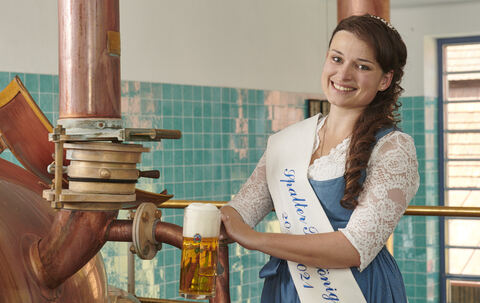 Die Spalter Bierkönigin Johanna Merkenschlager ist mitten im Spalter Hopfenhügelland auf dem Hof ihrer Eltern, auf dem diese bereits seit vielen Generationen Spalter Aromahopfen ...
