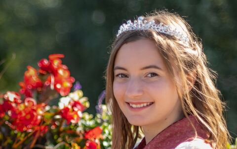 Die 17-jährige Mathilda Willitsch ist Blütenkönigin der Stadt Rosbach vor der Höhe, in der goldenen Wetterau, ein Teil von Hessen. Im April wurde sie gekrönt, nun repräsentiert ...