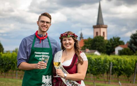 Mira Stahlheber (21) und Felix Fernow (20) sind gemeinsam das 18. Traditionspaar des Pfeddersheimer Marktes. Gemeinsam repräsentieren sie als Marktfraa Mira und Winzerborsch Felix den ...