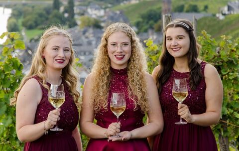 Weinhoheiten aus Lieser (Mosel) sind die 20-jährige Weinkönigin Anna I. (Mitte), die 17 Jahre alte Weinprinzessin Eva (links) und die 21-jährige Weinprinzessin Victoria. So oft es ...