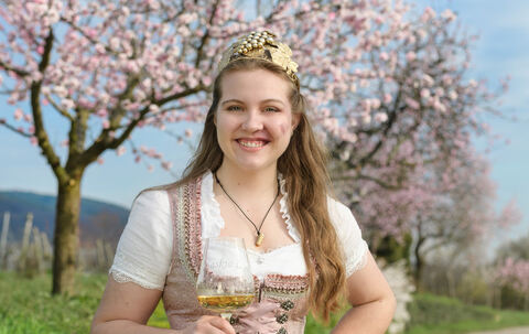 Die Mußbacher Weinprinzessin Saskia Bähr vertritt den Wein und die Winzer des Weindorfs Mußbach der Stadt Neustadt an der Weinstraße im Mittelpunkt der Deutschen Weinstraße für drei ...