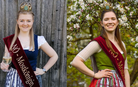 Die 21-jährige Mostkönigin Sigrid I. (links) kommt aus dem Mostviertel. Sie wurde im Dezember 2020 zur Niederösterreichischen Mostkönigin gekrönt, gemeinsam mit ihrer Stellvertreterin, ...