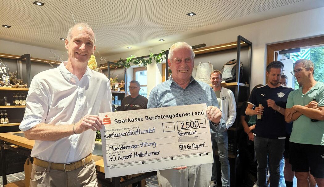 Zum 50. Jubiläum wollte man als Zeichen des Dankes eine Spende an die Max-Wieninger-Familienstiftung überreichen. Weil man von den Zielen der Stiftung überzeugt sei und weil man Menschen, vor allem auch Kindern helfen möchte, denen es nicht so gut gehe und die Hilfe dringend brauchen, sagte Fritzenwenger. Dafür wurden bei den Turnieren Spendenboxen aufgestellt, in die die Zuschauer freiwillige Beträge eingeworfen haben. Auch die ausrichtenden und teilnehmenden Vereine sowie Vereine, die zu Turnieren nicht angetreten sind, haben freiwillig gespendet. So kam stattliche 2500 Euro zusammen.