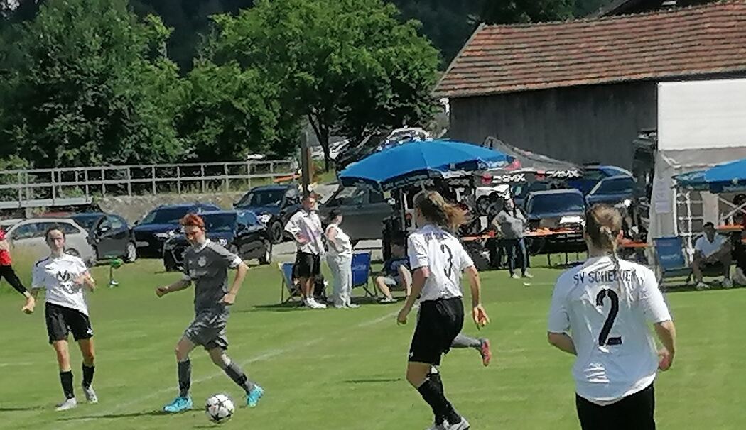 Neun Damen-Mannschaften waren am Start und lieferten sich in Vor- und Hauptrunde jeweils zwölf-minütige Hitzeschlachten. Trotz der Temperaturen von weit über 30 Grad herrschten auf dem Rasen pure Emotionen. Lautstark angefeuert von Stadionsprecher Stephan Hacker.