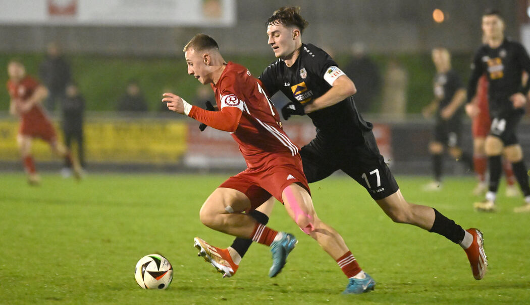 Folglich waren auch Torchancen absolute Mangelware. Die besten Gelegenheiten gab es noch im ersten Durchgang, die Top-Chance dabei für Traunstein: Nach einem Eckball kam Maximilian Hosp an den Ball, aber auch ihm fehlte beim Abschluss die Überzeugung. Rücklage und dadurch ein ungenaues Trefferbild sorgten dafür, dass das Leder aus wenigen Metern über den Kasten flog.