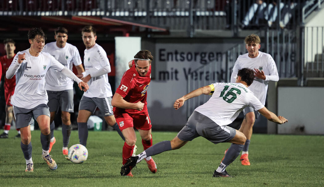 So schien es mit einem knappen Rückstand in die Pause zu gehen. Doch als den Hausherren in der Vorwärtsbewegung ein Ballverlust unterlief, konterten die Gäste den SBC aus, und Fabian Erhard vollendete zum 0:2 (40.).