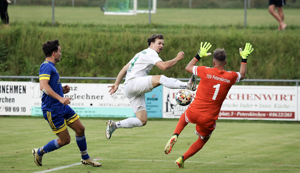 Peterskirchens Raphael Reichgruber machte es bei einem Freistoß nicht besser (29.). Dagegen brachte Adrian Furch anschließend Florian Aigner in Position, dessen Schuss blockte Markus Schauberger ab (30.).