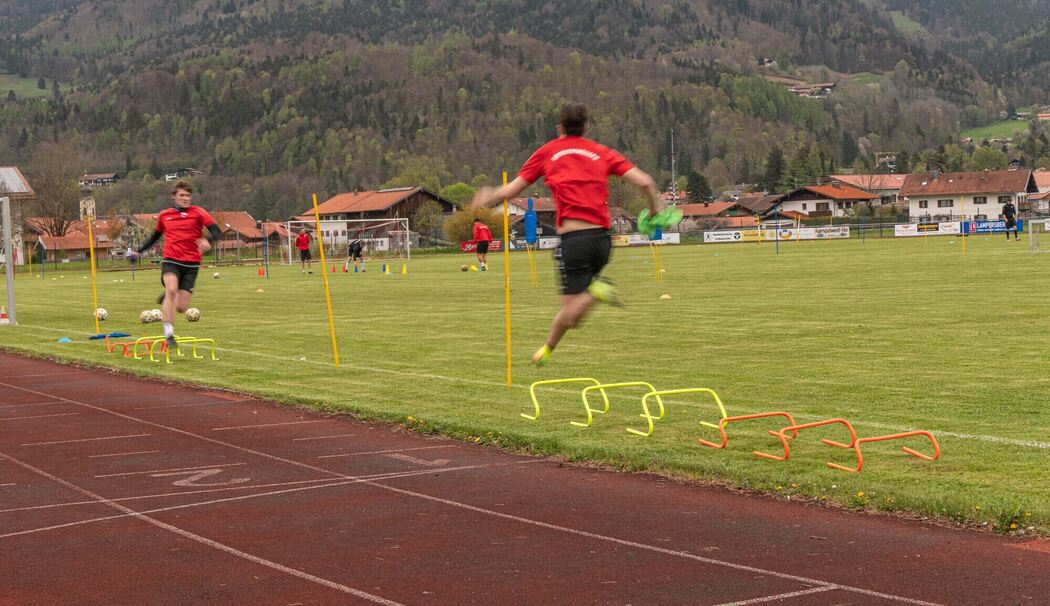 Und es geht doch: Nach sechs Wochen Pause trainierte die Erste Fußballmannschaft im SV Unterwössen, Tabellenführer in der B-Klasse 2, am Donnerstag erstmals wieder auf dem Sportplatz am Zollweg. Geübt wurde in Zweierteams an sechs verschiedenen Stationen.