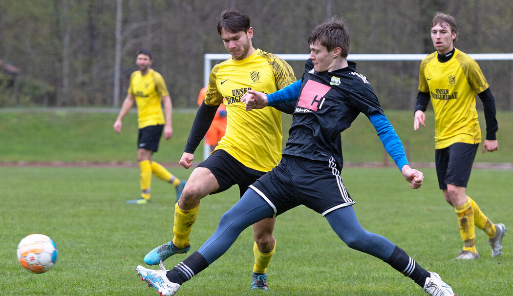 »Die ersten 20 Minuten gehörten uns«, konstatierte Schönaus Coach Tom Meissner im Anschluss durchaus korrekt. Stefan Weinbuch hatte einen ersten guten 20-Meter-Freistoß vom Stapel gelassen, Töpel parierte sicher (17.). Im direkten Gegenzug hätte Tilman Russegger völlig frei vor dem stark reagierenden Gästeschlussmann Christian Thurner die Führung erzielen müssen (18.). Die wenigen Zuschauer – bei ungemütlichem Wetter fanden keine 100 Hartgesottene den Weg in die Au – befürchteten zu Beginn, Reichenhall könnte einen ähnlich harmlosen Auftritt wie jüngst gegen Hammerau (0:1) hinlegen. Denn die Schönauer blieben durch einige Standards durchaus gefährlich. Doch die Männer in Gelb-Schwarz fingen sich und rissen die Spielkontrolle an sich. Gleichwohl blieben großartig notierenswerte Aktionen aus. Selbst das 1:0 nach einer knappen halben Stunde entsprang keiner allzu aussichtsreichen Gelegenheit: Doch aus dem Gewühl kam Ismet Bytyqi plötzlich zum Abschluss ins kurze Eck (29.) – das erste Tor des im Herbst verletzt pausierenden Stürmers in diesem Jahr. Die Platzherren blieben jetzt dran, Russegger wurde gerade noch abgeblockt (35.). Das für die Kantsperger-Crew etwas beruhigendere 2:0 fiel noch in Durchgang eins: Freistoß Dani Haas von Linksaußen, die Kugel rauschte durch alle Strafraum-Insassen an den zweiten Pfosten, dort stand Innenverteidiger Felix Baueregger völlig frei und staubte aus kurzer Torentfernung ab (41.).