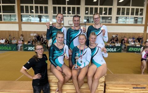 In der AK 14/15 waren Emily Mühlberger und Leni Steinbeißer für die Gastgeber am Start. Am Stufenbarre, Balken und Boden war Mühlberger jeweils mit deutlichem Abstand die beste Turnerin, am Sprung wurde sie Zweite. Dabei zeigte sie am Boden als einzige in ihrer Altersklasse einen Doppelsalto gehockt und brachte diesen auch noch perfekt in den Stand. Mit Doppelschraube und Einfachschraube rückwärts sowie gymnastischen Sprüngen und Drehungen in fast perfekter Ausführung erreichte sie hervorragende 15,95 Punkte.