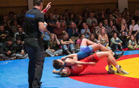 Tobias Küpper (G61) lieferte gegen Alexander Komorovskiy einen begeisternden Kampf und landete einen überzeugenden 10:0- Punktsieg. Nachdem Roland Bendeguz Rosz (F98) gegen Valentino Prelic ebenfalls mit 10:1 gewonnen hat, sah das Skore schon wieder besser aus. Doch im letzten Gefecht vor der Ringpause war der Griechisch-römisch-Spezialist Wolfgang Heil (F66) gegen Jamshed Panjishiri chancenlos und so stand es nach fünf Kämpfen 12:6 für die Gäste, die noch ein paar Trümpfe im Ärmel hatten.