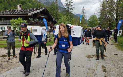 Zuvor hatte Vinzenz über mehrere Wochen für Aufregung gesorgt: Der 2024 im Rahmen des Wiederansiedlungsprojekts ausgewilderte Bartgeier hatte sich überraschend auf einen über 1 600 Kilometer langen Flug begeben – von den bayerischen Alpen über Süddeutschland bis in die Niederlande und schließlich an die Nordseeküste bei Oldenburg. Dort wurde er Mitte Juni an einer Landstraße eingefangen und in die auf Greifvögel spezialisierte Wildtierauffangstation in Rastede gebracht. »Vinzenz hatte auf seinem Flug rund zehn Prozent seines Körpergewichts verloren, war aber glücklicherweise unverletzt«, erklärt Toni Wegscheider, Projektleiter beim LBV. »Er wurde in Rastede bestens versorgt, gründlich untersucht und schonend wieder aufgepäppelt.« Neben der erhofften Gewichtszunahme wurden auch medizinische Checks, insbesondere zur Abklärung von Bleibelastung, durchgeführt – alle Befunde waren unauffällig.