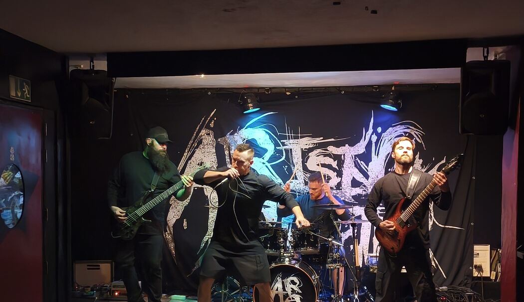 Deutlich schwerere Kost boten in musikalischer Hinsicht dann »A Rising Chapter«, denn die noch junge Band hat sich dem Genre des Death Metal verschrieben, lässt aber auch andere Einflüsse zu. Bass und Schlagzeug legen ein mächtiges Soundfundament für Songs wie »Hated Society« und »Black Hole«, die von wuchtigen Breakdowns geprägt sind. Die »Kuckucksnest«-Besucher ließen sich davon mitnehmen und lieferten auch die von Sänger Jakob Wlasiuk geforderten Circle Pit und »Wall Of Death«. Mit »Buried in Pain« ging ein heftiger Set zu Ende, bei Musikern wie Publikum herrschte beste Stimmung.