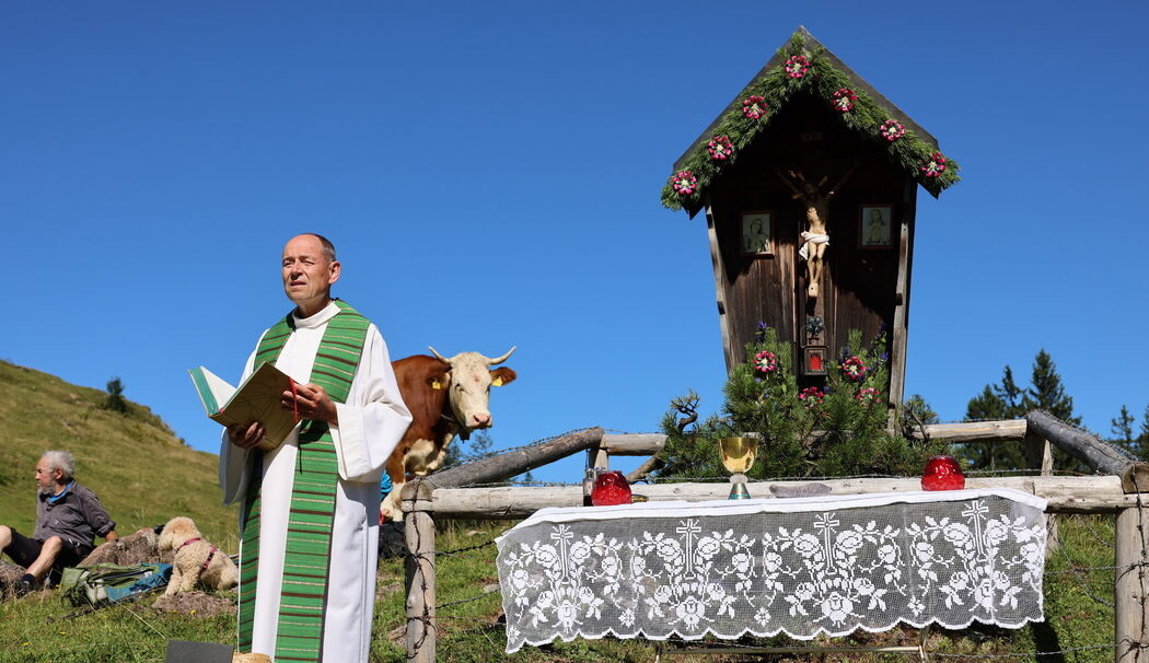Am Ende der Messe spendete der Pfarrer den Wettersegen. Familie Kraus mit Senn Herbert Kraus vom Simmernkaser lud im Anschluss noch zu einer Brotzeit ein.