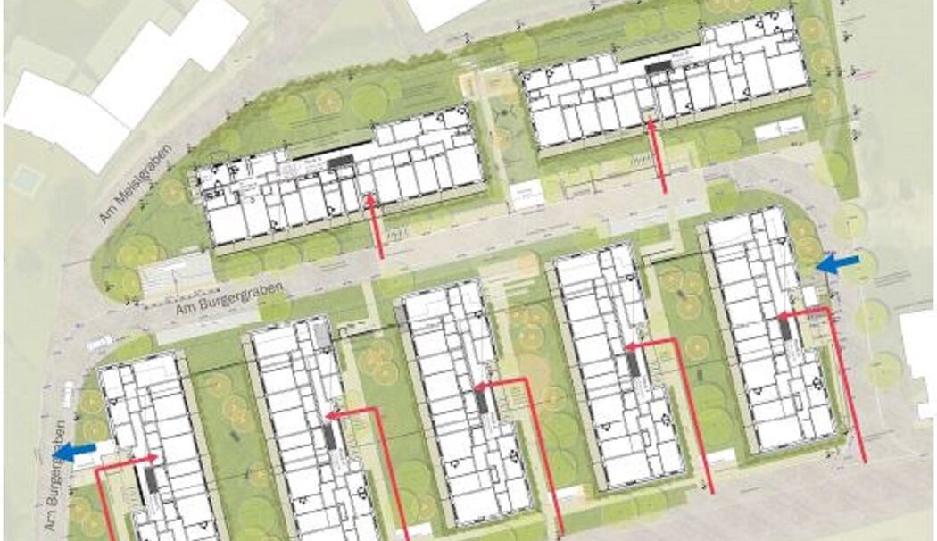 Mit dabei war Matthias Fiss von der BayernHeim GmbH. Die staatliche Wohnungsbaugesellschaft hat im November 2023 das Projekt »Am Burgergraben« von der Gemeinde übernommen, nachdem sie es wegen gestiegener Finanzierungs- und Baukosten nicht mehr alleine stemmen konnte. Ebenfalls anwesend war auch der zuständige Architekt Wolfgang Emrich von der »Grassinger Emrich Architekten GmbH« aus München,