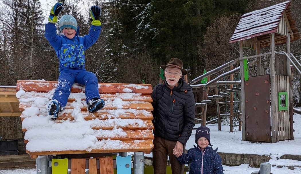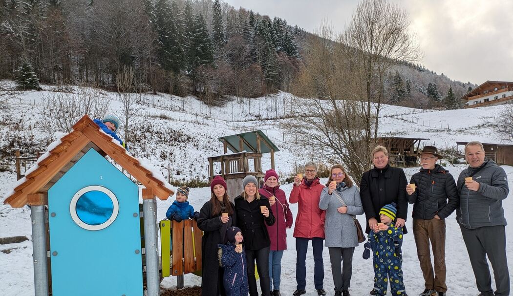 Ramsau – Mehrere Jahre hat eine Gruppe Ramsauer Eltern dafür gekämpft, jetzt konnte das neue Spielgerät bei winterlicher Stimmung endlich eingeweiht werden: Ein Spielhaus mit Rutsche, das explizit auf Kinder im Alter von unter drei Jahren ausgerichtet und damit auch für Kinder mit Sinnes- und Mobilitätseinschränkungen geeignet ist, bildet jetzt einen bunten Mittelpunkt am Ramsauer Spielplatz.