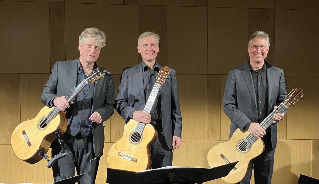 In der Szene weit über die Grenzen Münchens hinaus bekannt, gilt das Ensemble mit Thomas Etschmann, Alexander Leidolph und Mikhail Antropov seit Jahrzehnten als »Schwergewicht des Genres«. Unter dem Motto »Gitarrenmusik im Wandel der Zeit« präsentierten die drei Musiker Werke vom 17. bis zum 21. Jahrhundert. Den Auftakt bildete das Concerto D-Dur RV 93 von Antonio Vivaldi, in einer Fassung des