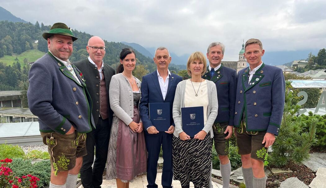 Im Rahmen einer Feierstunde im Panoramarestaurant des »Hotel Edelweiss« erhielten die beiden aus den Händen von Landrat Bernhard Kern, Franz Rasp (Bürgermeister Berchtesgaden), Thomas Weber (Bürgermeister Bischofswiesen) und Thomas Resch (zweiter Bürgermeister Bischofswiesen) das Ehrenzeichen des Bayerischen Ministerpräsidenten für Verdienste im Ehrenamt.