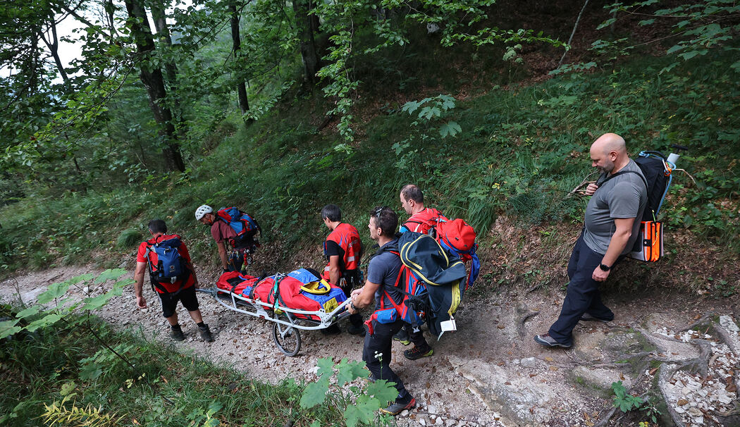 Bereits am Freitagabend brauchte gegen 18.50 Uhr eine 46-jährige Urlauberin aus Mittelfranken die Bergwacht, die sich am Weißbach-Speik-Rundweg in Bayerisch Gmain im Abstieg etwas unterhalb der Abzweigung zum Freimahderköpfl in einem steileren Stück so schmerzhaft am Sprunggelenk verletzt hatte, dass sie ohne Hilfe nicht mehr ins Tal kam. Ihr Mann und ihr Sohn setzten bei der Leitstelle Traunstein einen Notruf ab. Die Retter fanden die Unfallstelle dann, versorgten die Verletzte, lagerten sie in den Luftrettungssack ab und brachten sie mit der Gebirgstrage stellenweise seilgesichert bis zum Bergwachtauto, mit dem es dann weiter zur Kreisklinik Bad Reichenhall ging. ml