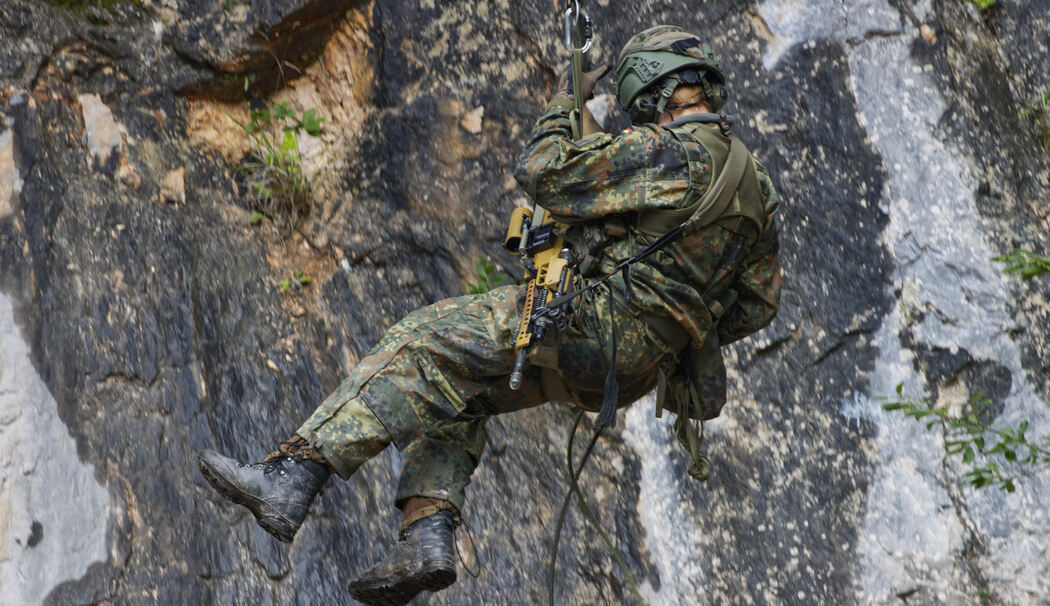 Los ging es mit dem Aufstieg über den Schrecksattel auf die Reiteralpe und dem anschließenden Aufbau von Zelten des Biwakplatzes, bevor am nächsten Tag die Ausbildung am Felsen folgte: Klettersteig, Abseilen, Seilrutsche, Toprope-Klettern und ein Seilsteg mussten überwunden werden. Sichtlich beeindruckt haben die Besucher so das Kerngeschäft der Gebirgsjägertruppe praktisch kennenlernen dürfen.