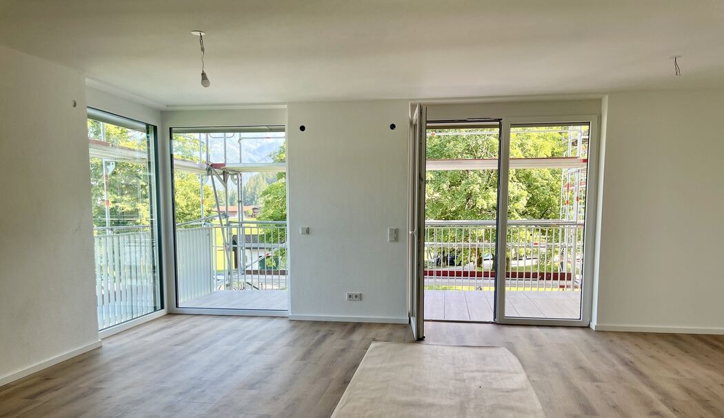 Schönau am Königssee – Seit mittlerweile zweieinhalb Jahren wird in der Hinterschönau am Fuße des Grünsteins kräftig gebaut. Am Danklweg schafft die Volksbank Raiffeisenbank Oberbayern Südost in Zusammenarbeit mit der Gemeinde Schönau am Königssee Wohnraum für Einheimische. Während das umfangreiche Wohnbauprojekt langsam in die Endphase übergeht, beginnt am 15. September auch die Bewerbungsphase. Zur Verfügung stehen insgesamt zehn Doppelhaushälften sowie 14 Eigentumswohnungen und 19 Mietwohnungen im Geschosswohnungsbau. Im Frühjahr 2026 sollen die 43 Wohneinheiten bezugsfertig sein.