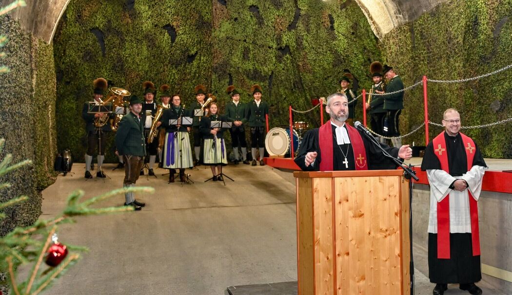 Schneizlreuth – Zeitnah zum Gedenktag der heiligen Barbara am 4. Dezember lädt die Wehrtechnische Dienststelle für Schutz- und Sondertechnik (WTD 52) in Oberjettenberg jährlich Mitarbeiter, Gäste aus der Bundeswehr, der Lokalpolitik und Partner, die in vielfältiger Weise mit der Dienststelle befasst sind oder zusammenarbeiten, zu einer stimmungsvollen Barbarafeier in die Stollenanlage unter der Reiteralm ein.