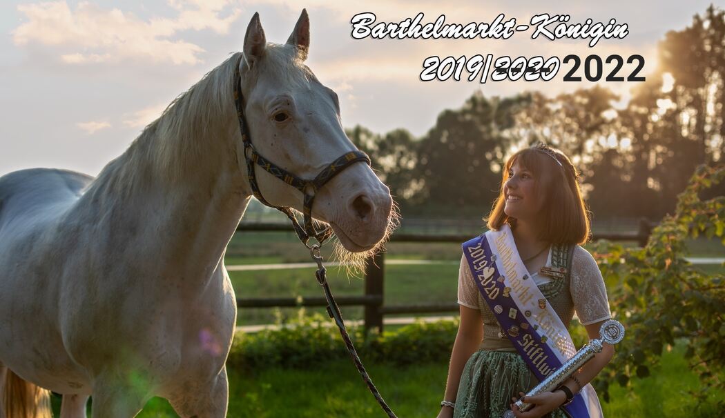 Die Barthelmarktkönigin Sarah Pleiner vertritt bzw. repräsentiert den Markt Manching, das Bierzelt Stiftl und natürlich den Barthelmarkt in Oberstimm, der bei Jung und Alt sehr beliebt ist. Am bekanntesten beim Barthelmarkt sind der Umzug und der Rossmarkt. »Ich habe mich sehr gefreut, als ich 2019 Barthelmarktkönigin geworden bin, da das ganze eine spontane Aktion von mir war mit dem Satz 'Ich gewinne eh nicht, also warum nicht mitmachen und Spaß haben' ... und schwubs ... war ich Barthelmarktkönigin«, berichtet die 22-Jährige von ihrer Wahl.