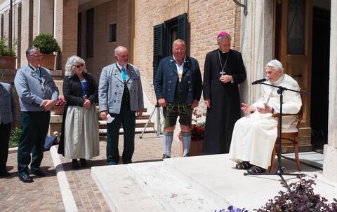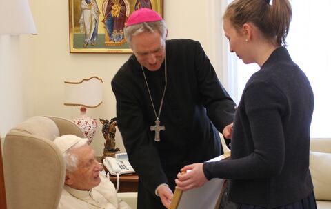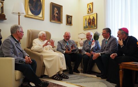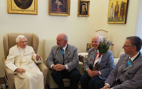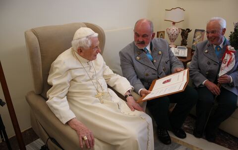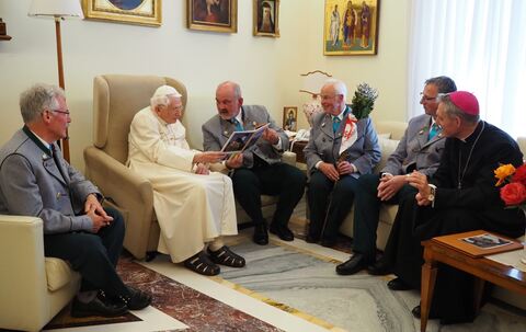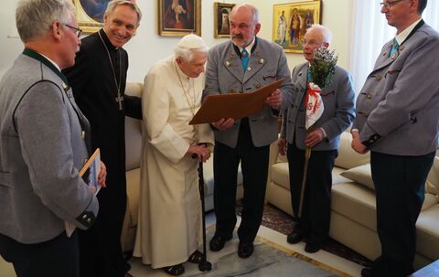 Mediengalerien TSSurberger Delegation überreichte Papst die Ehrenbürgerurkunde Zum Artikel: Papst em. Benedikt XVI. ist Surbergs erster Ehrenbürger